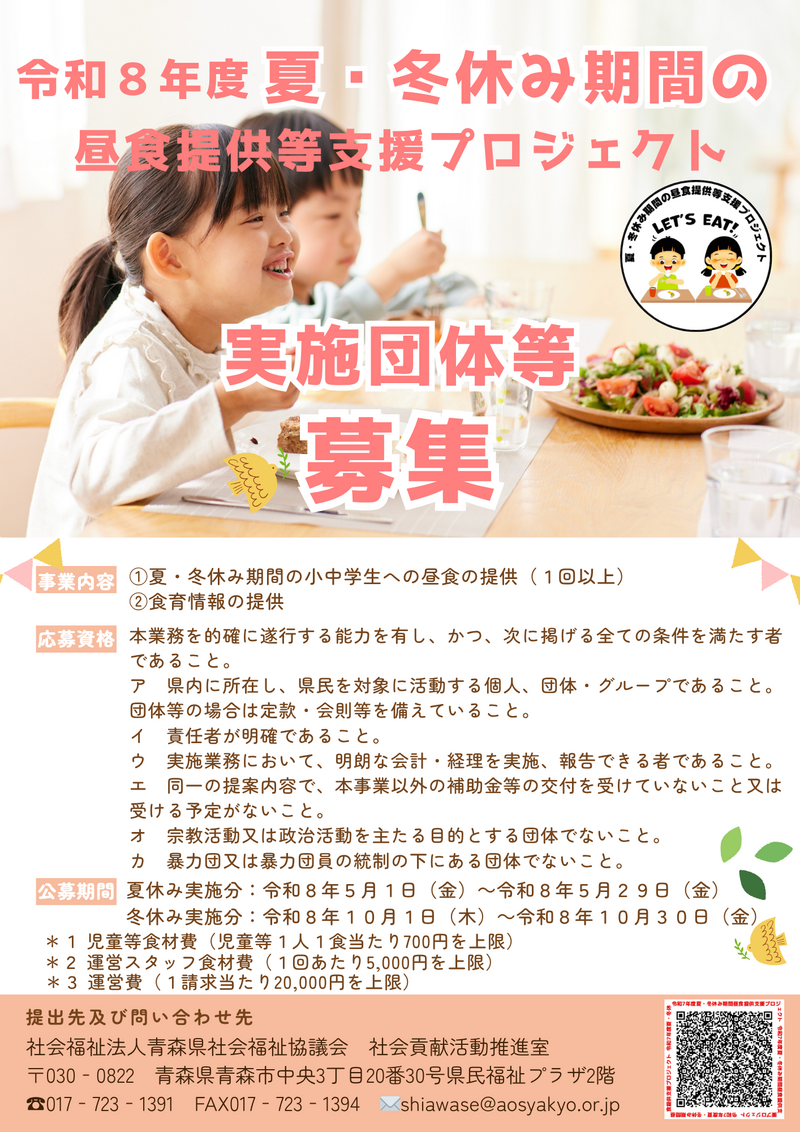 1.令和8年度 夏・冬休み期間の昼食提供等支援プロジェクト実施団体等公募要領等